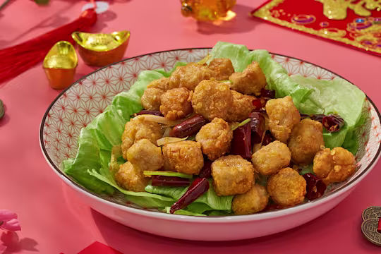 Spicy Auspicious Szechuan Chili Chicken is the perfect dish for ancestor worship or the reunion feast. Pairing crispy batter with classic aromatics, this dish epitomises luck.