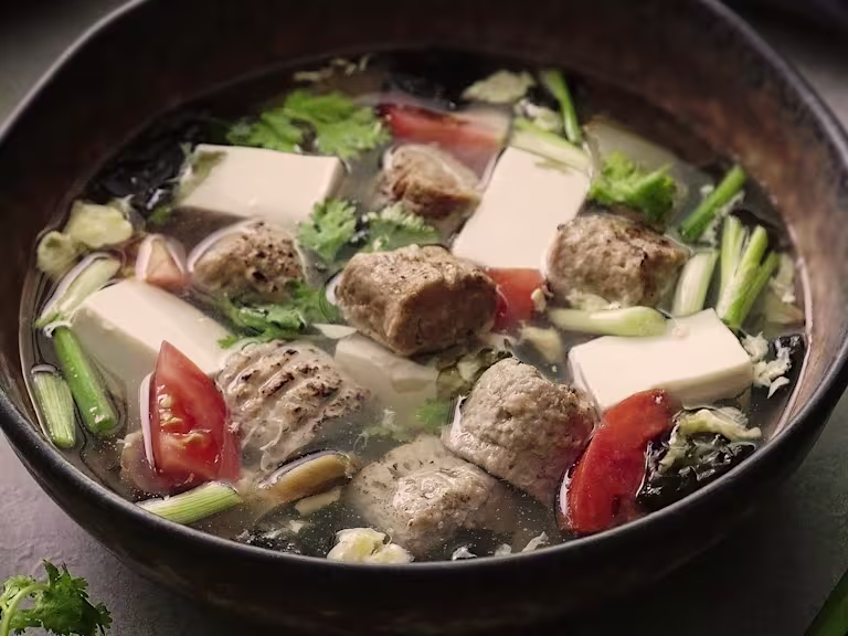 Poached Quorn Swedish Style Balls with Fragrant Coconut Broth
