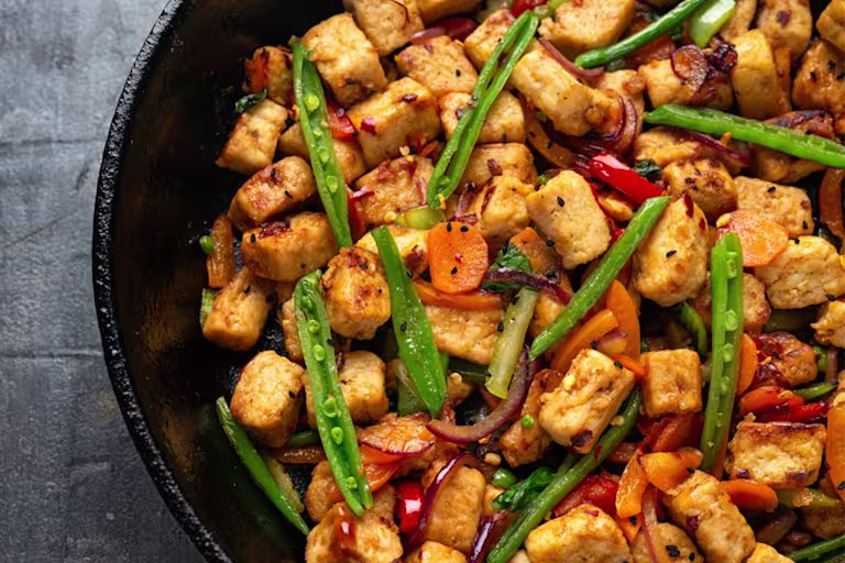 Plant-based proteins, on the other hand, are modern meat-free products made from ingredients such as pea, soy, mung bean, and rice proteins. They could also be made from whole-food proteins such as jackfruit and lion’s mane mushrooms.